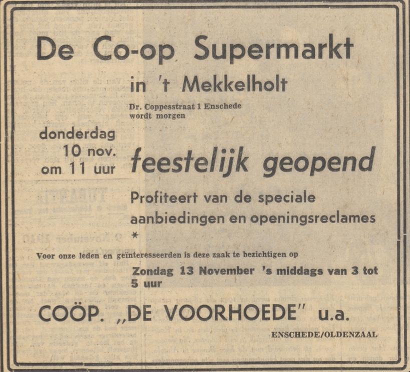 Dr. A.H.J. Coppesstraat 1 supermarkt Co-op De Voorhoede advertentie Tubantia 9-11-1960.
