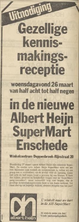 Rijnstraat 20 Winkelcentrum Deppenbroek supermarkt Albert Heijn advertentie Tubantia 25-3-1969