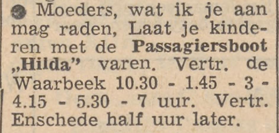 Passagiersboot Hilda advertentie Tubantia 18-7-1960.
