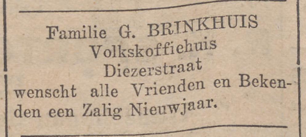Brinkhuis G. concierge Diezerstraat 14 advertentie 31-12-1930