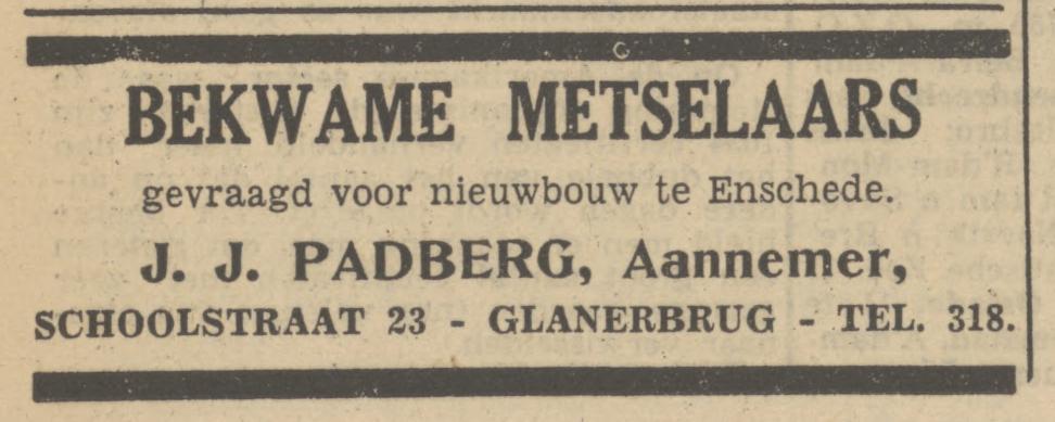 Schoolstraat 23 Aannemer J.J. Padberg advertentie Tubantia 12-7-1950.jpg