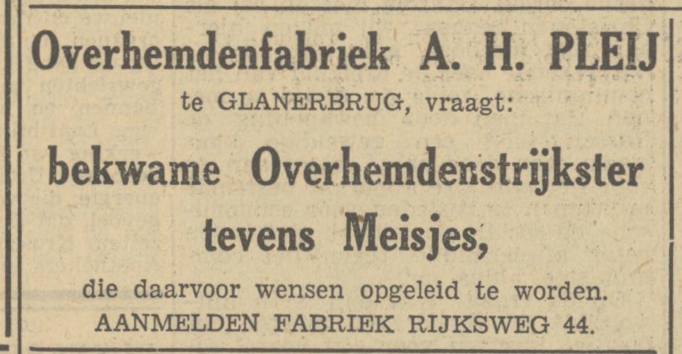 Rijksweg 44 Glanerbrug Overhemdenfabriek A.H. Pleij advertentie Tubantia 20-12-1949.jpg