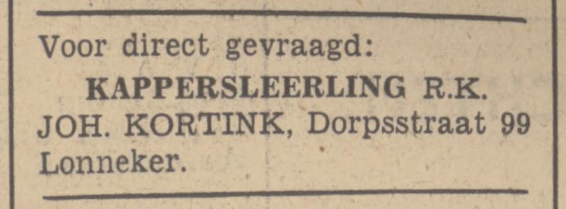 Kortink J.A. kapper Dorpsstraat 99 advertentie 15-6-1939 en 19-3-1943