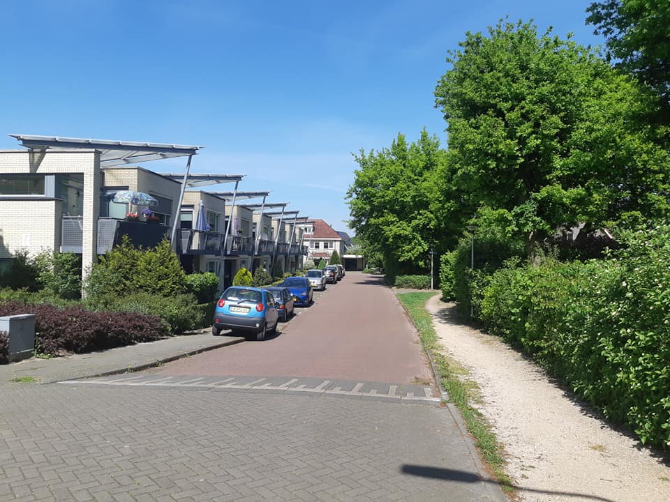 De straat lopend van de Pastoor Balkstraat eerst in noordelijke richting en vervolgens in westelijke richting tot de Nieuwedijk