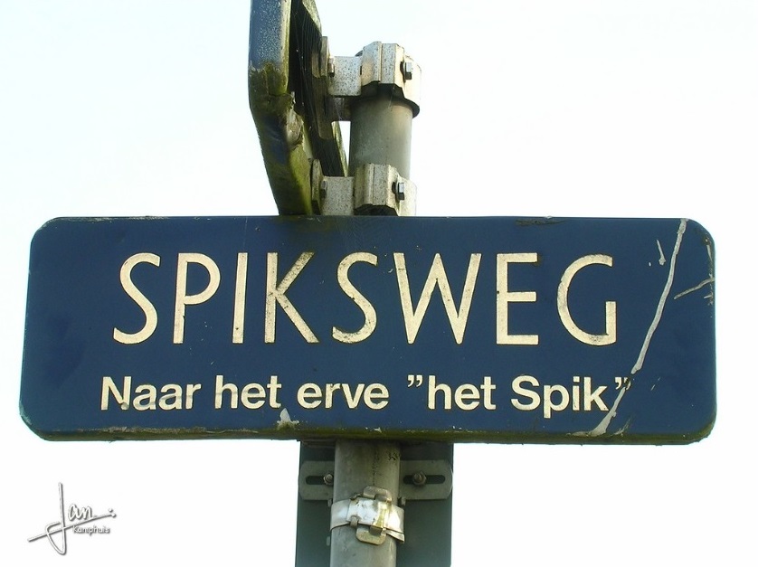 Naar het erve "Het Spik". Een spik is een van takkebossen gemaakte brug, waarover planken of stammen worden gelegd. In de Glanerbeek was hier vroeger een dergelijke brug waaraan dit erf zijn naam heeft te danken (29 mei 1936). bron± https://straatnamen.enschede.nl/straten/00941/?char=S