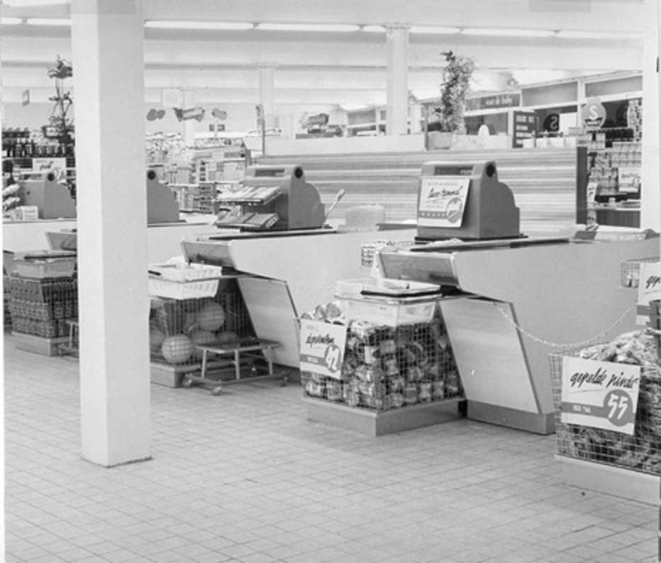 Usselerweg 42-48 Supermarkt Simon de Wit interieur bij heropening 1962..jpg
