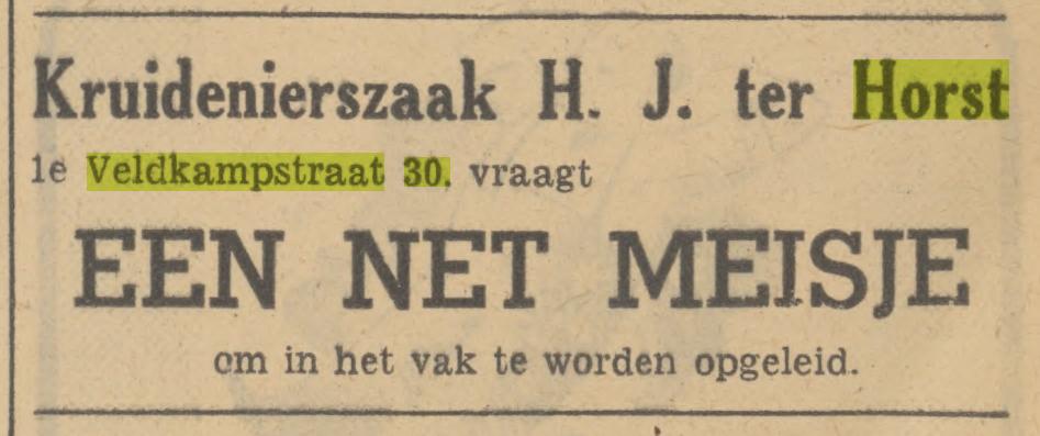 Horst H. winkel eerste Veldkampstraat 30 advertentie 3-11-1947