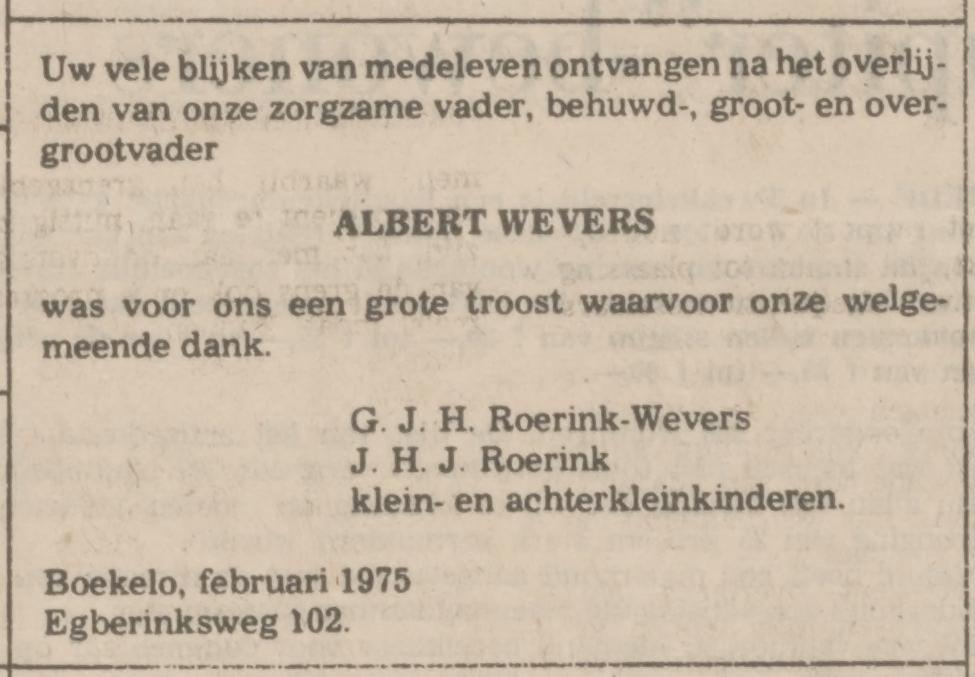 Wevers A. landbouwer Egberinksweg 102 advertentie 17-10-1942 en 13-2-1975