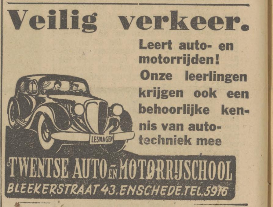Blekerstraat 43 Twentse Auto- en Motorrijschool advertentie Tubantia 17-1-1947