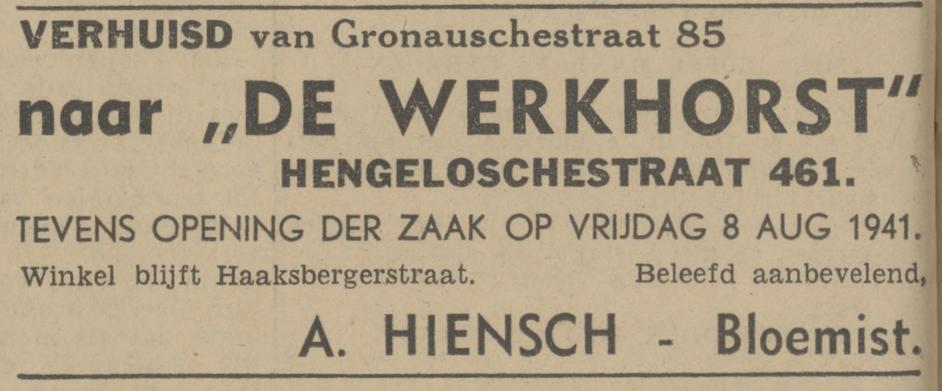 Hiensch, B.J. Kruiden.- en vl.w., tab. en sig. Haaksbergerstraat 526