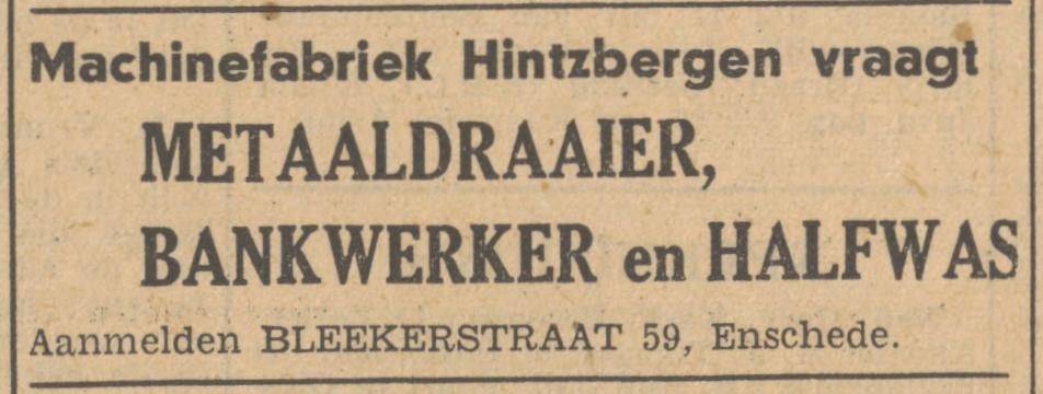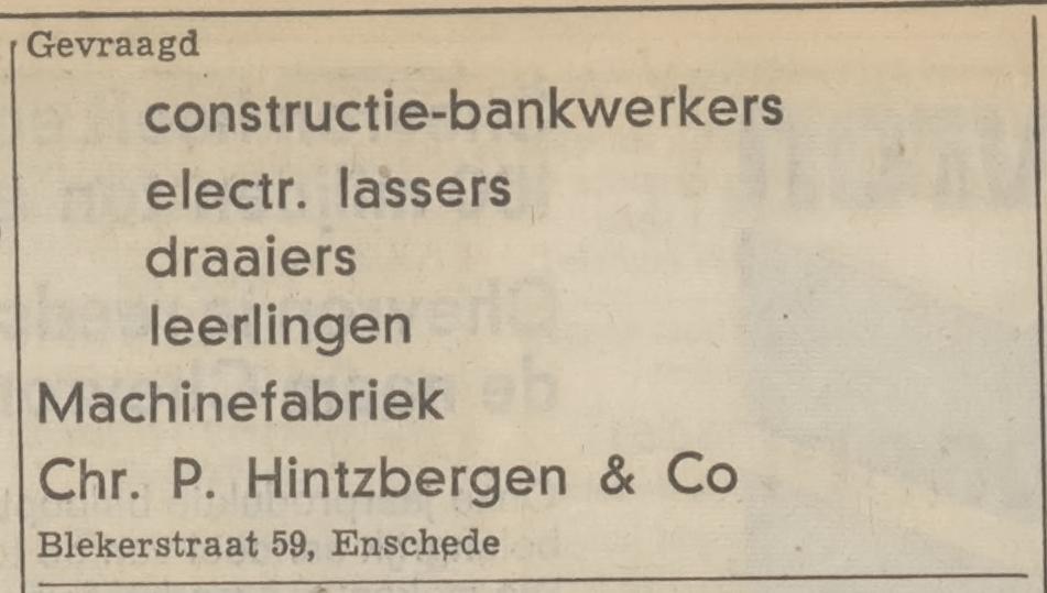 Hintzbergen Co., Chr.P. Machinefabr., Bleekerstraat 59