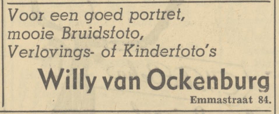 Ockenburg W.Ph. Van fotograaf Emmastraat 84 advertentie 30-10-1929 en 26-10-1949