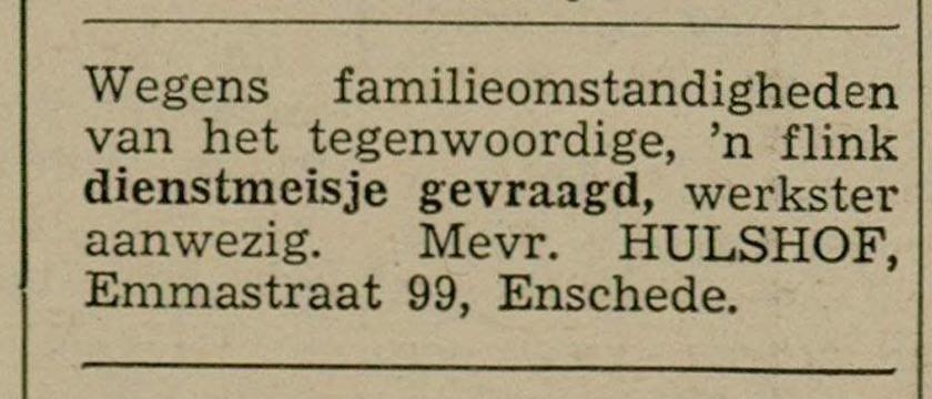 Emmastraat 150 Riek Kruse advertentie Tubantia 4-6-1942.jpg