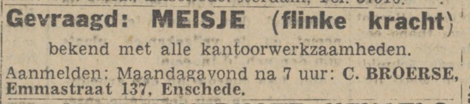 Broerse C. bedrijfsleider Emmastraat 137 advertentie 5-6-1943