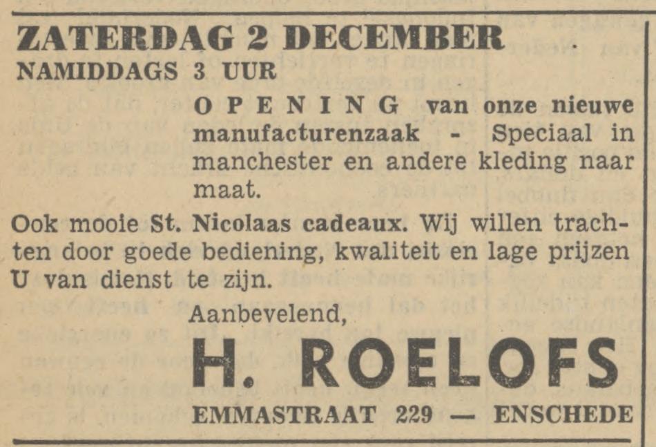Roelofs H. textielarbeider Emmastraat 229 advertentie 30-11-1950