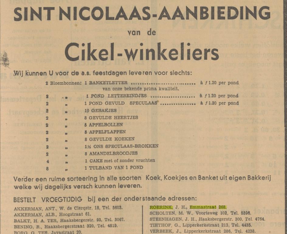 Roerink Joh.H. kruidenier Emmastraat 268 advertentie 28-11-1940 en 15-6-1943