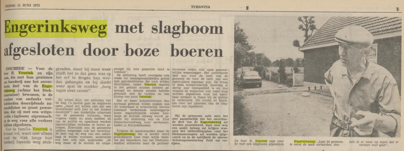 Veurink H. arbeider Engerinksweg 82 krantenbericht 15-6-1973