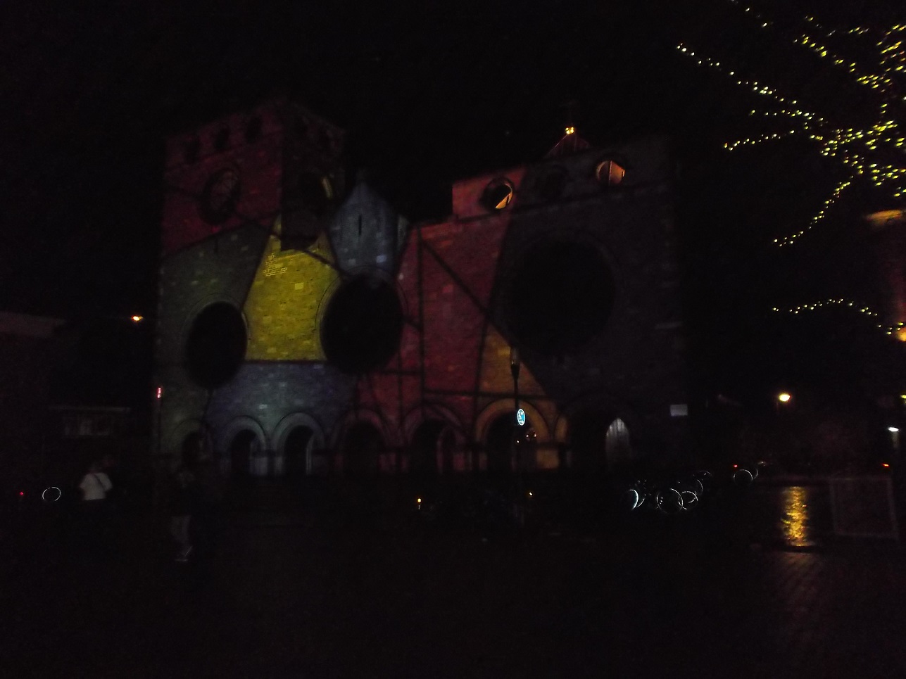 Hierbij alvast een voorproefje van de lichtprojectie op de Grote Kerk aan de Oude Markt. Gezien op Facebook van Enschede Stad van Nu.
