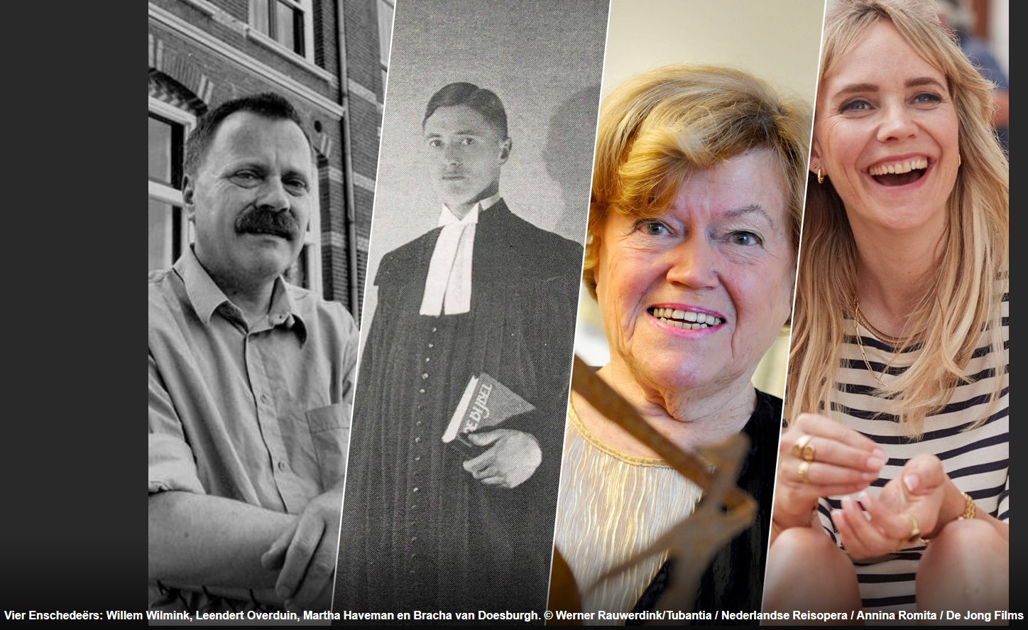 Lukraak schoten de namen door mijn hoofd. Eerst veelal van mannen, hier geboren of import, heren die ons allang geleden ontvielen of nog steeds actief en betekenisvol zijn: van textielbaronnen, van burgemeester Edo Bergsma die de singels bedacht, van priester Alphons Ariëns die roomse arbeiders terzijde stond, van dominee en verzetsman Leendert Overduin, van voetballer Epi Drost of diens ploegmakker Jan Jeuring, van rebel en kunstenaar Jan Cremer, van de artistieke vrienden Willem Wilmink en Harry Bannink, van tv-maker Erik Dijkstra, van popmuzikant Adje van van den Berg…