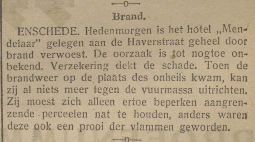 Haverstraat brand Hotel Mendelaar krantenbericht 18-7-1923.