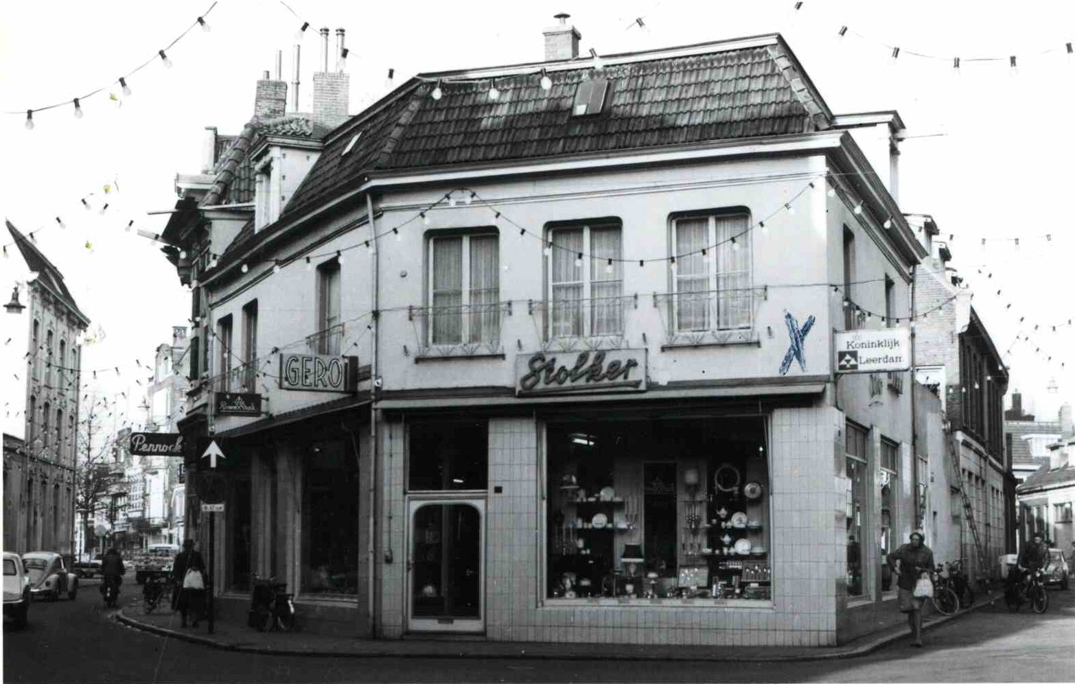 Zo zag het pand van Presburg schoenen op de hoek Haverstraat en Langestraat er dus vroeger uit.