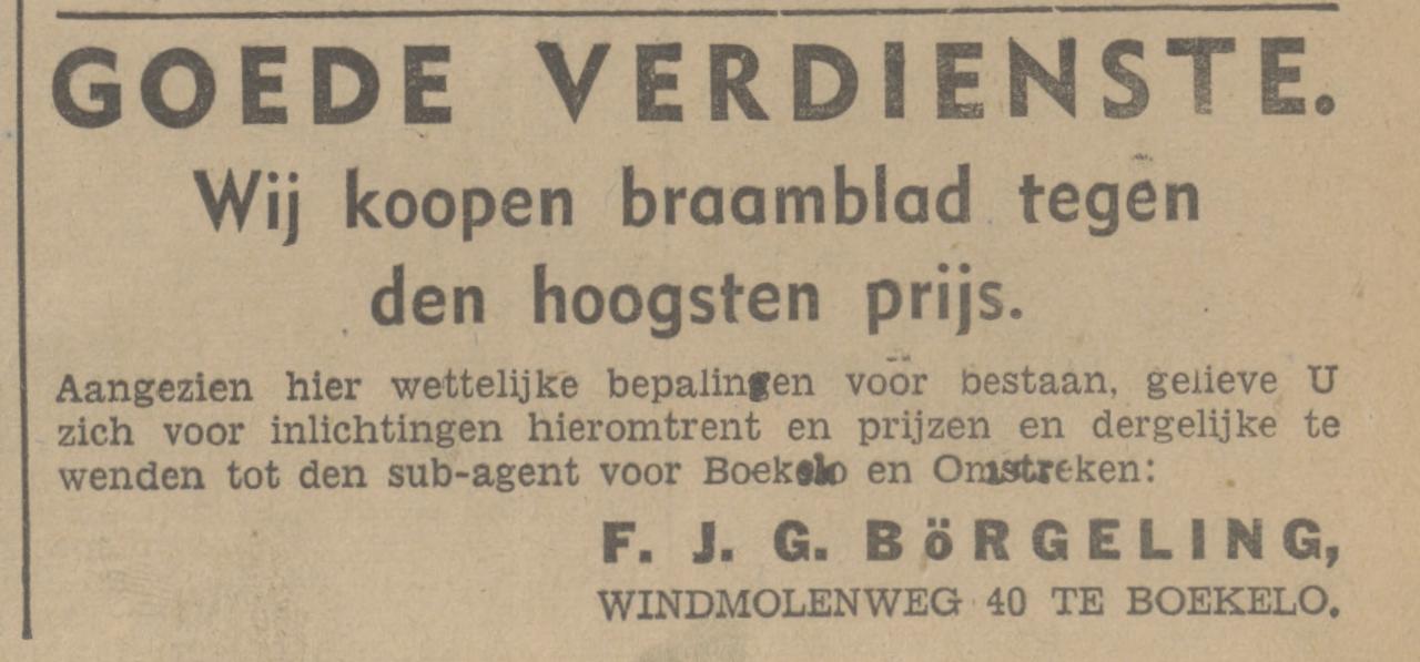 De molenaar Gerard Börgeling was blijkens akte van 12-3-1919 een van de oprichters van de Boekelosche Coöperatieve Stoomzuivelfabriek die vroeger aan de Windmolenweg 42-44 stond. zie vorig bericht van 15-1-2023.