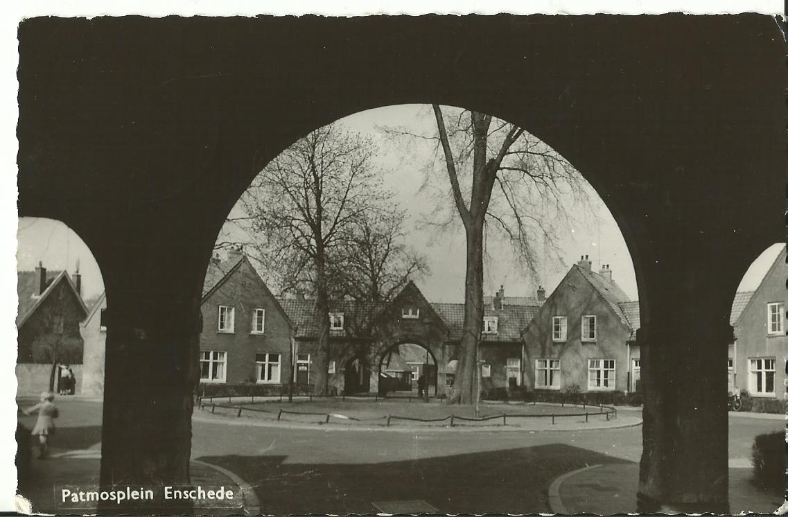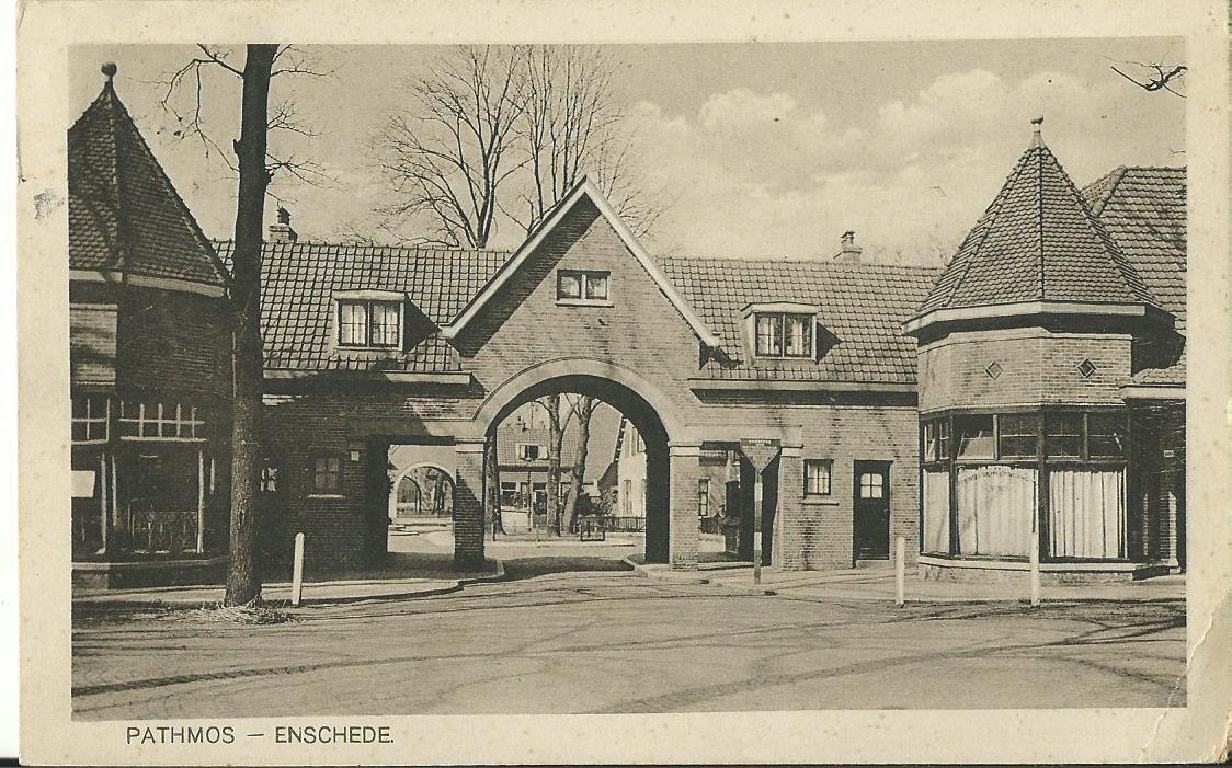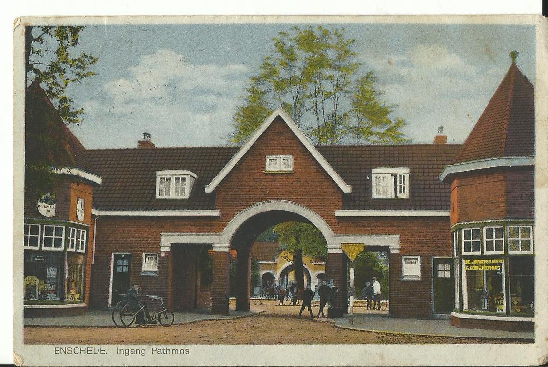 Ingang Pathmos vanaf Haaksbergerstraat 30-12-2012 en vroeger (ansichtkaarten uit eigen collectie).