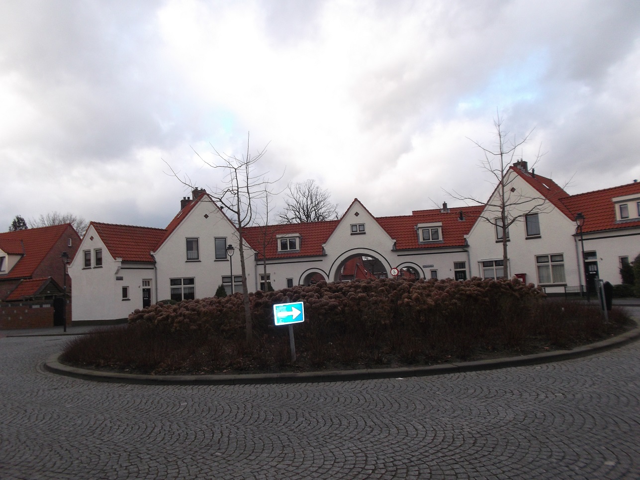 De afdakswoningen op de hoek met de Ribbeltsweg bestaan nog steeds.