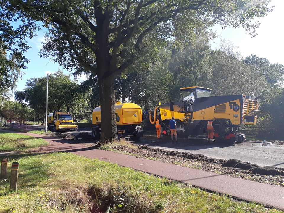 Ik heb vandaag nog maar weer eens een kijkje genomen bij de wegwerkzaamheden aan de Haaksbergerstraat ter hoogte van de rotonde bij de Ferdinand Bolstraat. De Haaksbergerstraat wordt daar van een nieuwe asfaltlaag voorzien.