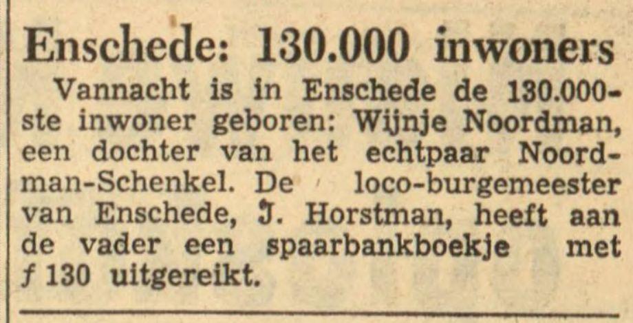 Uit de krant van 4-12-1946: Enschede 100.000 inwoners.