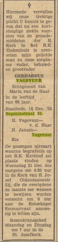 Begoniastraat 31 Gerhardus Vagevuur overlijdensadvertentie Tubantia 19-12-1955.jpg