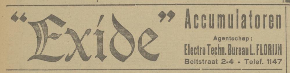 Florijn L. zaak Beltstraat 2 advertenties 6-1-1925 2-10-1928 en 20-4-1933