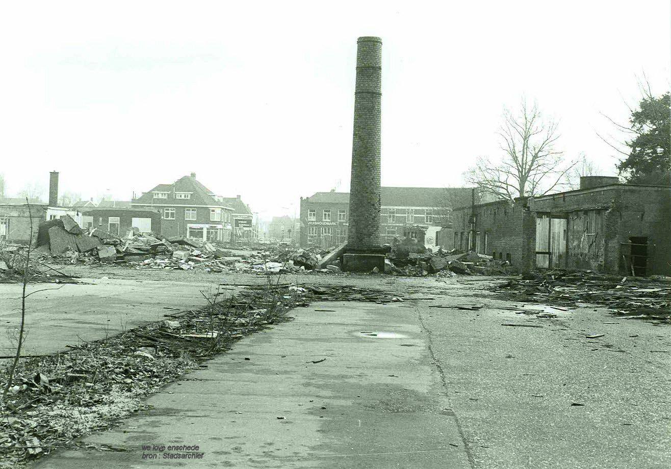 Ja, langs het slachthuis, tussen de tennisbaan van het Volkspark en de "ballerinawinkel", langs de houtzagerij van Denneboom, de veiling, naar Jannink aan de Haaksbergerstraat.