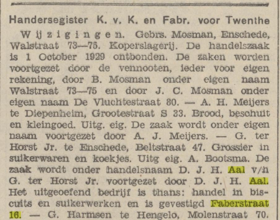 Faberstraat 16 D.J.H. Aal grossier suikerwerken krantenbericht 9-11-1929.jpg