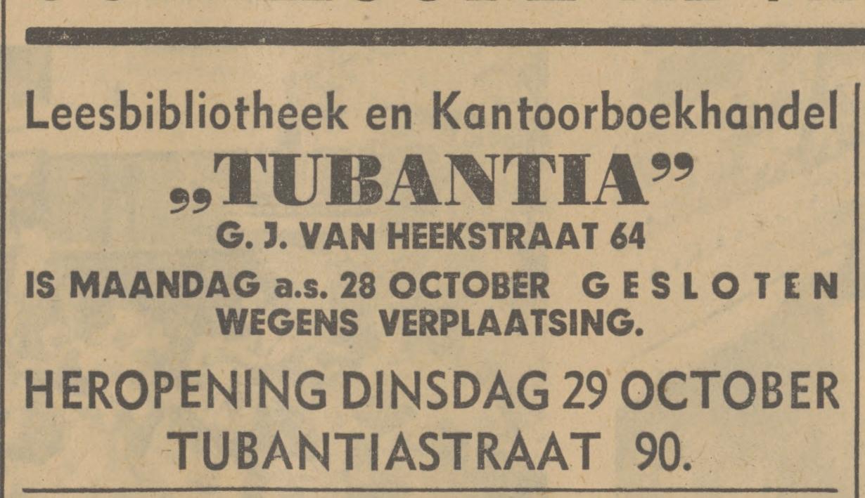 G.J. van Heekstraat 64 leesbibliotheek en kantoorboekhandel Tubantia advertentie Tubantia 26-10-1940.jpg