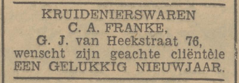 Franke C.A. winkelier G.J. van Heekstraat 76 advertentie 30-12-1939