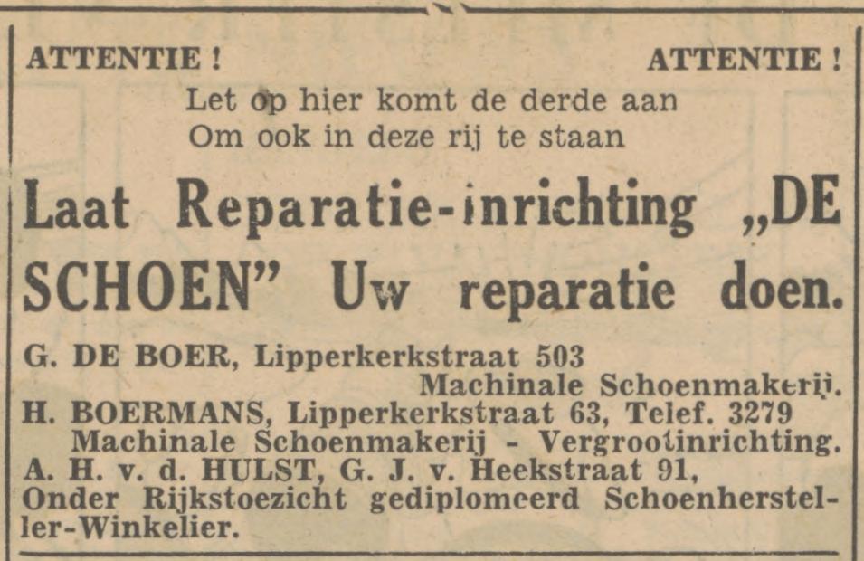 G.J. van Heekstraat 91 schoenmakerij De Schoen A.H. van der Hulst advertentie Tubantia 24-9-1947.jpg
