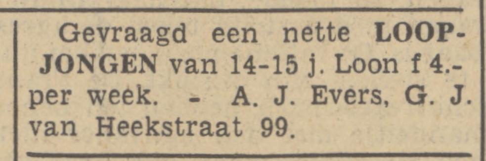 Evers A.J. kruidenier G.J. van Heekstraat 99 advertentie 9-11-1938 29-7-47 en 21-4-1947