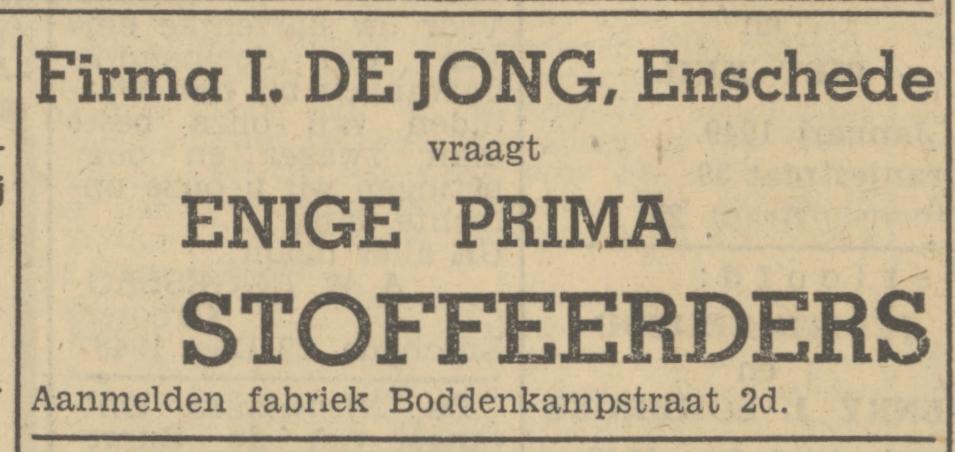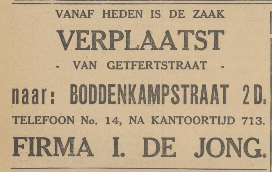 Jong, Fa. I. de Grooth. in meub. en stoffeerderij, Boddenkampstraat 2d