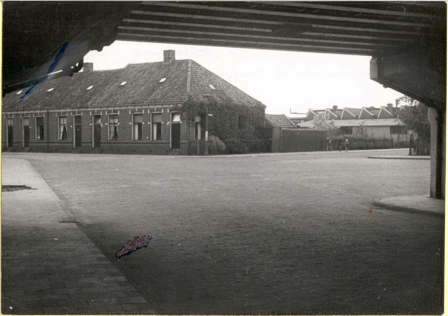 Gasfabriekstraat 6-12 Hoek Bleekweg (vroeger Dijkmanssteeg) afdakswoningen vanonder Brug Zuid en Getfertweg gezien. juli 1943.jpg