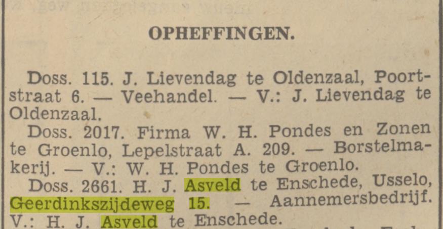 Asveld H.J. aannemer Geerdinkszijdeweg 15 krantenbericht 3-2-1939