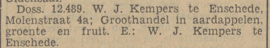 2213 Kempers, W. Grooth.in aardapp., gr. en fr., Molenstraat 4a,