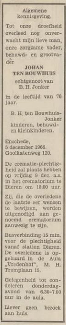 Goolkatenweg 120 Johan ten Bouwhuis overlijdensadvertentie Tubantia 6-12-1968.jpg