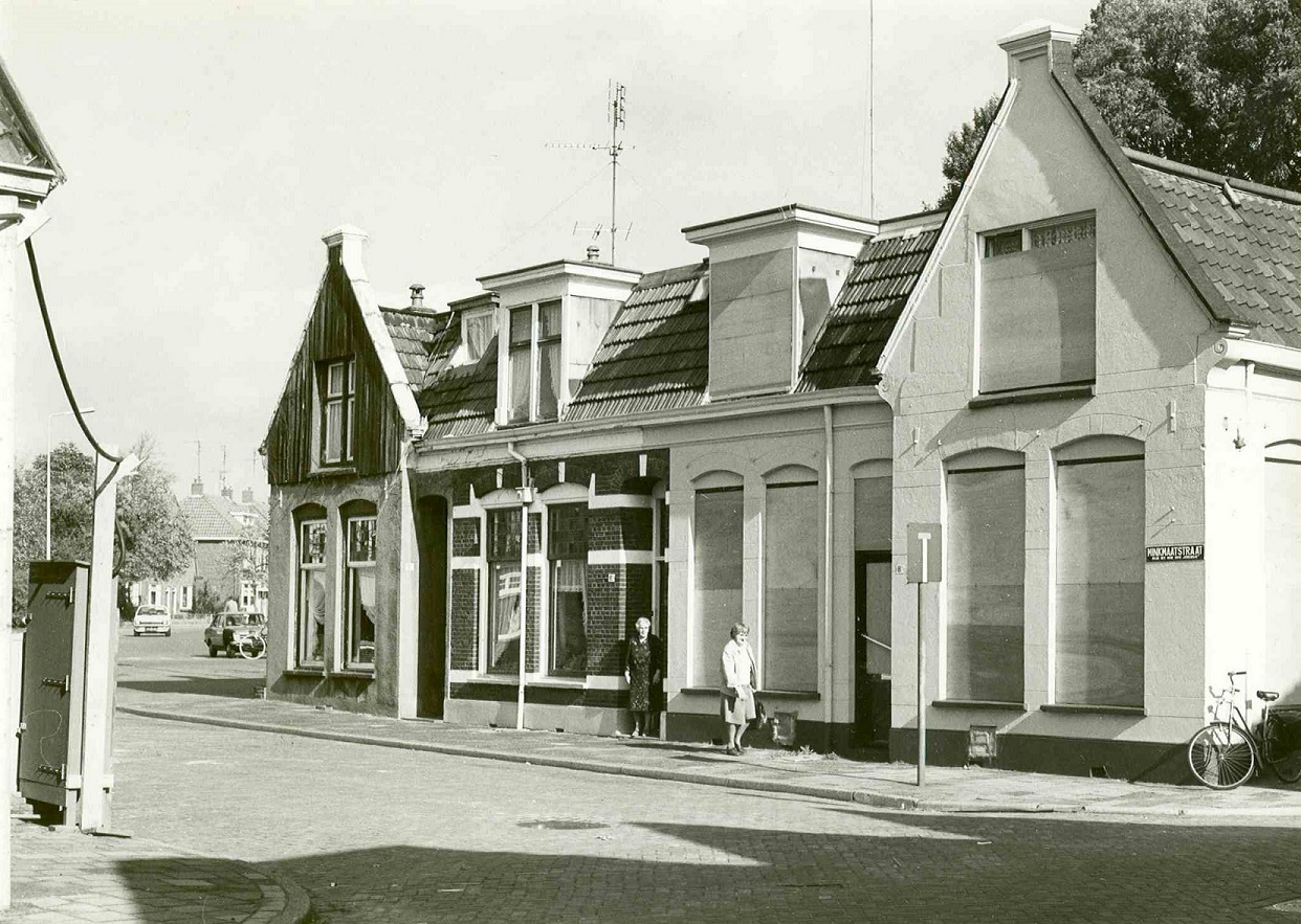 Foto Jan Schipper vanuit de Zaaierstraat waar hij de Doka en de afwerkruimte in de tuin had naar de Minkmaatstraat waar we samen de winkelruimte en nieuwe doka verbouwd en ingericht hebben. In het pand had volgens mij eerst een kapsalon gezeten..