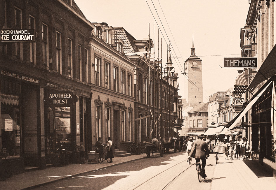 Gronausestraat 7-9 vanaf hotel restaurant De Kalanderij richting Veenstraat. feb. 1944. winkel Themans.jpg