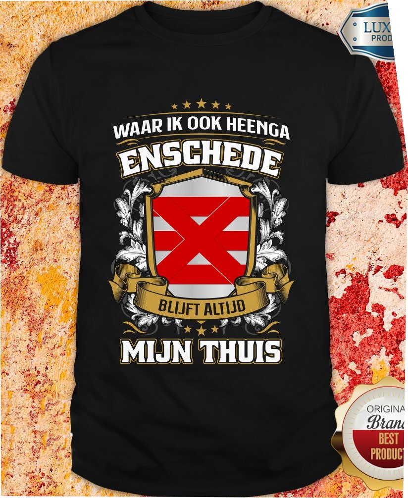 De raadsleden kregen er elk een voor thuis. De vlag is te koop bij Enschede Promotie. Die hoopt dat hij op heel veel momenten in de stad te zien is. Halfstok op 13 mei vanwege de vuurwerkramp en fier in top op 1 april als de bevrijding van Enschede wordt herdacht.
