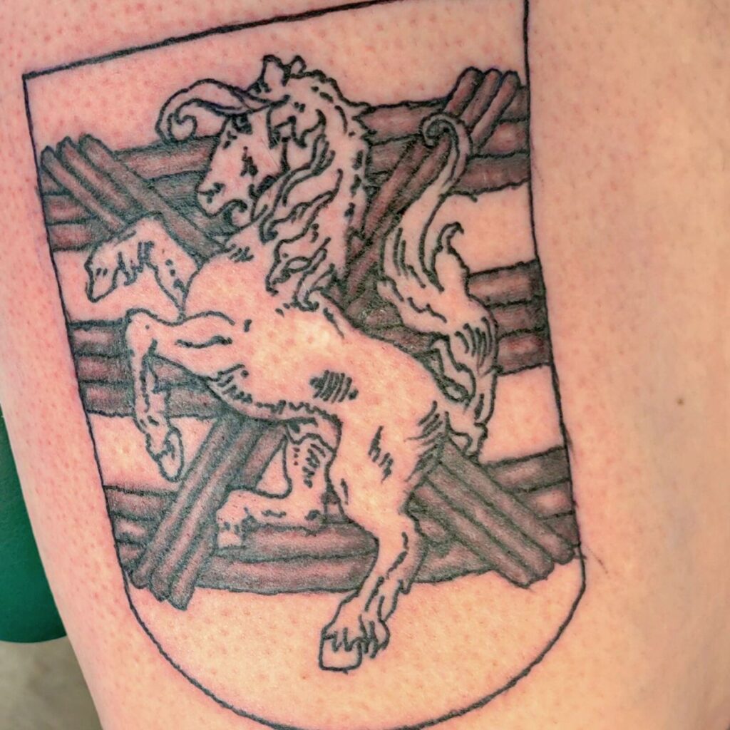 Het logo van Enschede, een hekje, zie je overal in de stad terug. Als beeldmerk van de gemeente Enschede en Enschede Promotie, in de kerstversiering in het centrum en vereeuwigd op het lichaam van sommige stadsgenoten.