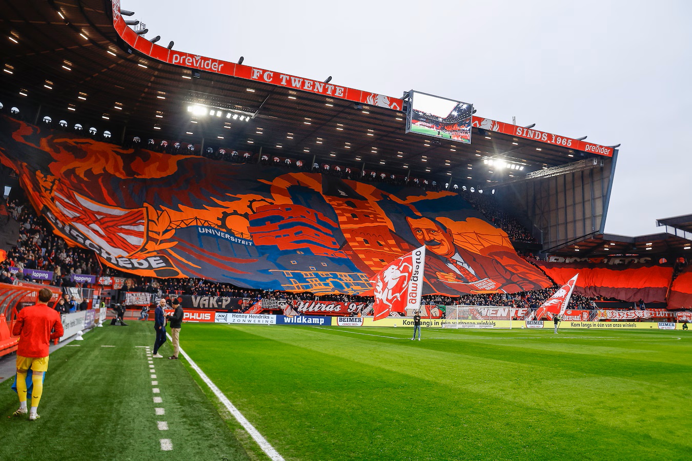 Colosseum 65 Grolsch Veste 14-12-2025 met 2550-liter-verf-voor-grootste-supportersdoek-fc-twente-ooit met ook afbeelding stadszegel van 1325.