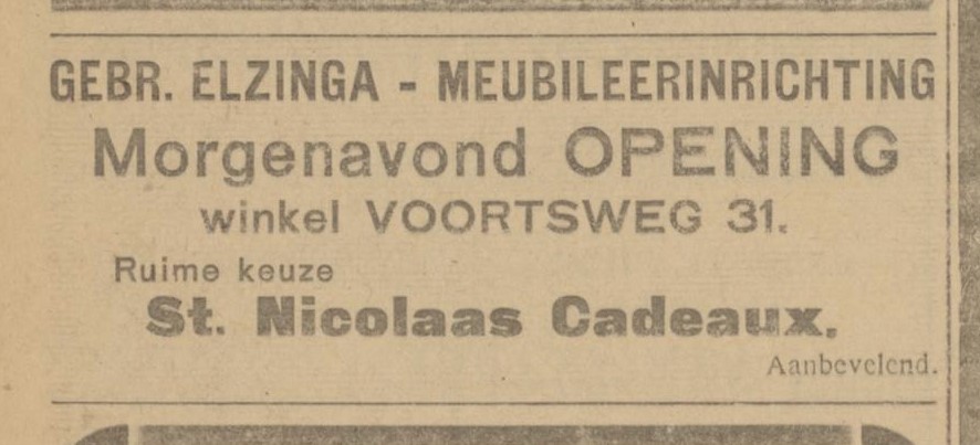 Deze maand viert Ibo Elzinga met zijn gezin en medewerkers het 100-jarig bestaan van Elzinga Wonen, voorheen Gebroeders Elzinga1923 06 27 Gebr. Elzinga Woninginrichting