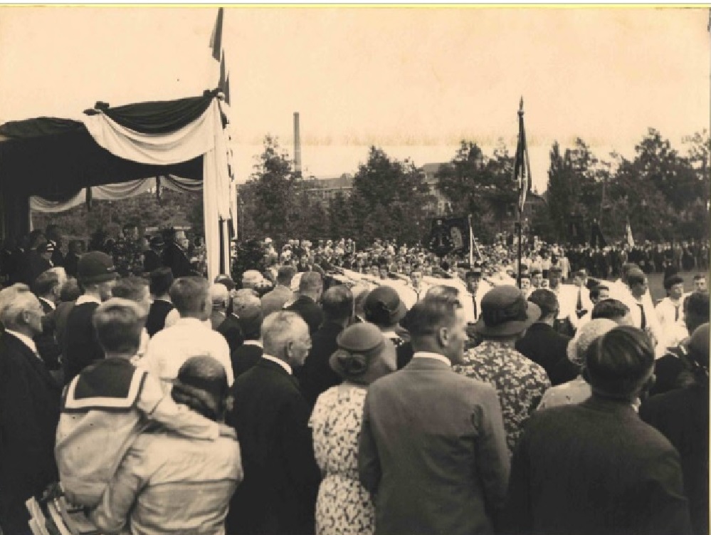 G.J. van Heekpark 15-7-1932 Défilé t.g.v. van het afscheid van burgemeester Edo Bergsma